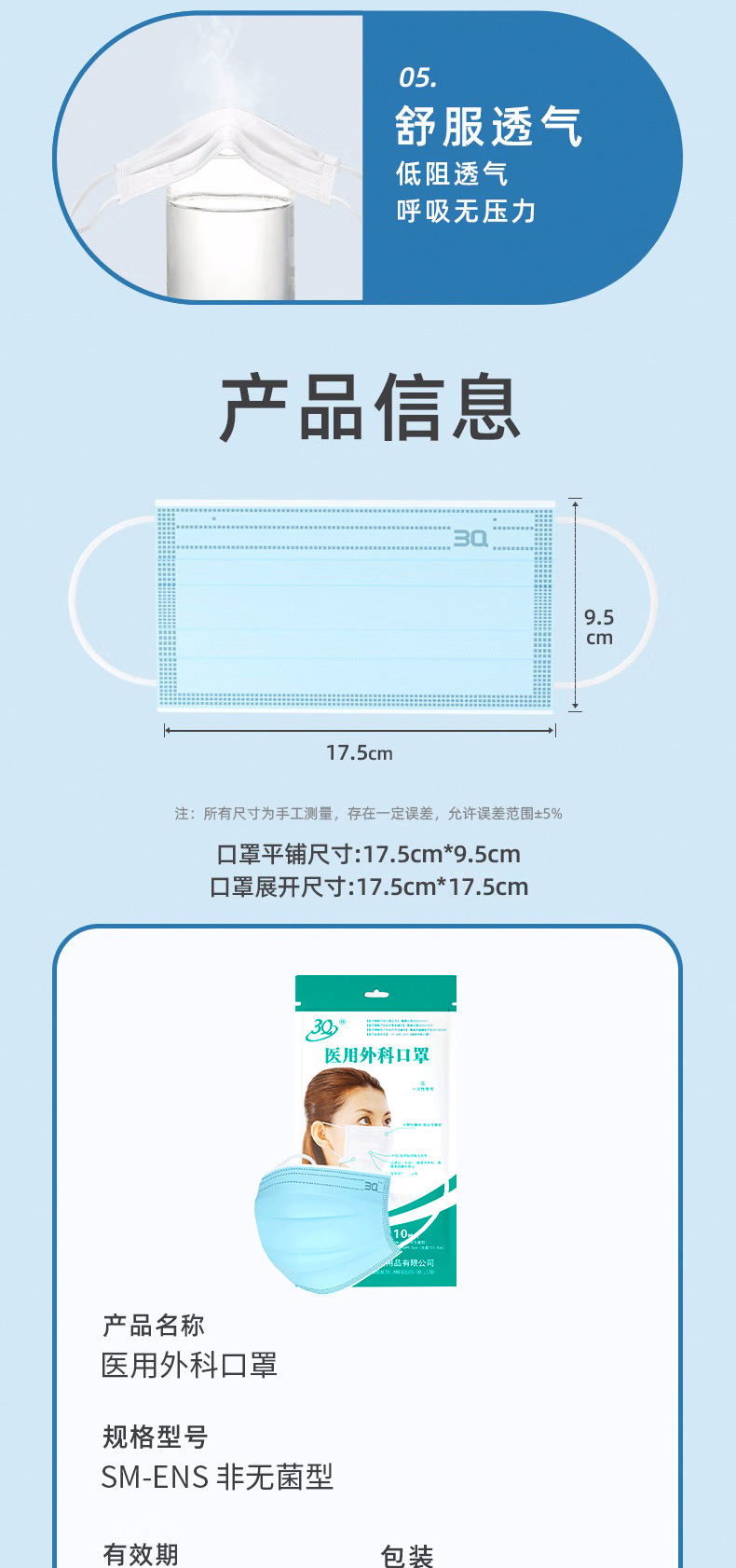 10袋~医用外科口罩 耳挂非无菌袋 17.5*9.5cm 10片/袋