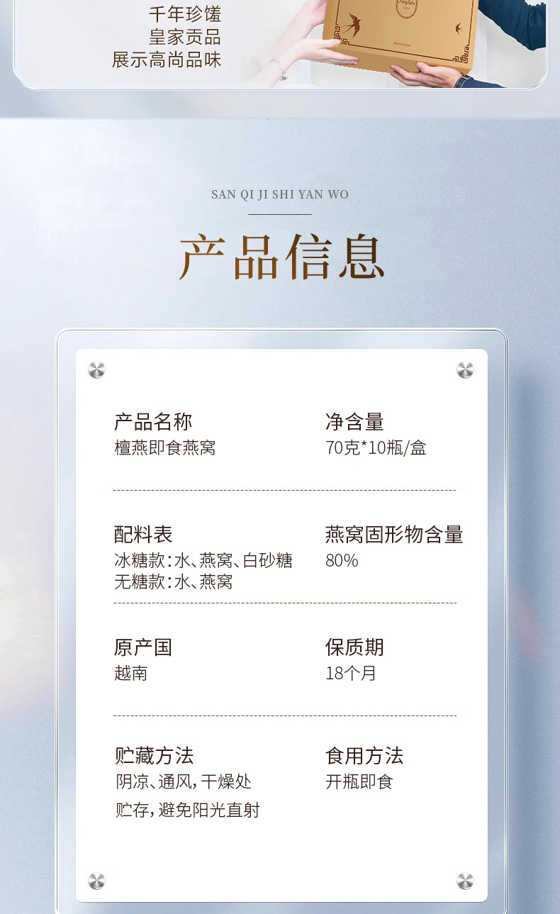 kinglulu 越南原装进口 檀燕即食燕窝 燕窝固形物含量80%